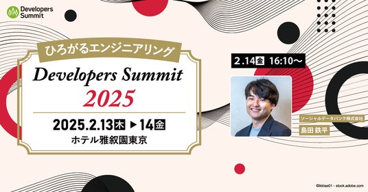 ソーシャルデータバンク株式会社(所在地:東京都港区、代表:伊藤 俊輝)は、2025年2月13日(木)~14日(金)にホテル雅叙園東京で開催される「Developers Summit 2025」に参加いたします。