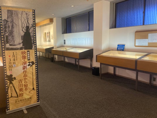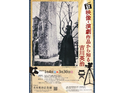 所蔵資料の中から、「鳴門秘帖」「宮本武蔵」「新・平家物語」「私本太平記」など、吉川英治作品を原作に映像化・演劇化された作品を紹介します。映画・ドラマ・演劇など、メディアで異なる吉川英治作品の表現をご覧ください。