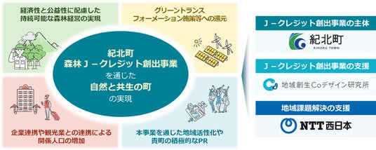 この度、新たな取り組みとして紀北町の森林資源を活用したJ-クレジット創出・活用をめざしていくにあたり、NTT西日本三重支店および地域創生Coデザイン研究所が事業支援を行うこととなりました。