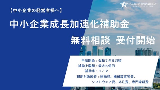 株式会社フラッグシップ経営は、2025年2月3日(月)より、「中小企業成長加速化補助金」に関する無料相談の受付を開始いたしました。