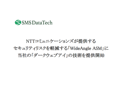 株式会社エス・エム・エス・データテック(以下 SMSデータテック)は、NTTコミュニケーションズ株式会社(以下 NTT Com)が2月3日から提供を開始したセキュリティリスク軽減サービス「WideAngle ASM 」に、当社が開発した「ダークウェブアイ」の情報収集機能を提供いたします。