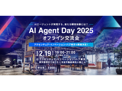一般社団法人AICX協会(東京都新宿区、代表理事 小栗伸、小澤健祐)は、アクセンチュア株式会社(東京都港区、代表取締役社長:江川 昌史)の協力のもと、2025年2月19日(水)19:00より「AI Agent Day 2025」オフライン交流会(以下、本イベント)をアクセンチュア・イノベーションハブ東京(東京都港区)で開催いたします。