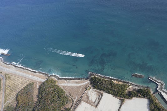 今回は、福島県の相馬双葉漁業協同組合の協力のもと、漁船を出航し、SkySenseと銀星アド社が空中に浮揚させた係留気球から、立入禁止海域に見立てた海域内の漁船を撮影しました。