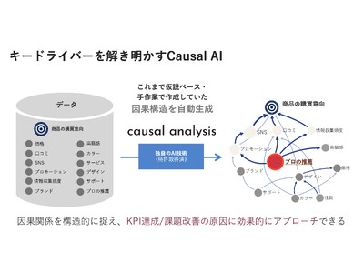 生成AIの登場により、大量のデータを素早く処理し、高精度な予測や分類をすることが可能になりました。しかし、「なぜその結果が出たのか」を根拠を明らかにしながら説明することは、従来のAI技術では困難でした。そのため、複雑な心理や事象から因果関係を明らかにし、適切なアクションを導くには、データサイエンティストや外部コンサルへの活用が必要となり多くのコストや時間を割く必要がありました。