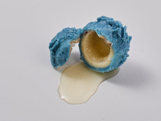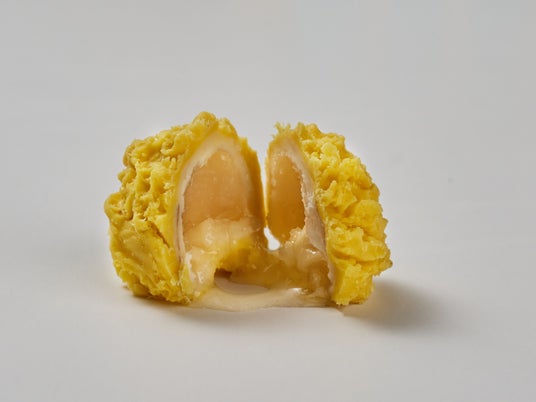 フォークを使って手作業でコーティングして「とがった」外観を与え、アルマニャック、ラズベリー、グランマルニエ、ウィリアムズ洋ナシなど、さまざまなフレーバーで作られます。可愛さのイメージから徐々に洋酒が大人の甘美な味わいを演出します。