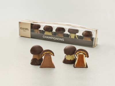 詳細:現オーナーの祖父である初代マーク クルイゼルが考案した、かわいらしいキノコ型のショコラ。50年以上門外不出の特別なレシピで作られています。傘の部分はカリカリ食感の自家製ヌガティーヌをダークショコラでコーティングし、幹の部分はモチモチの自家製キャラメルや、ヘーゼルナッツが香ばしいジャンドゥーヤをしのばせてあります。