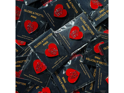 グローブ・トロッターではバレンタインの期間中、グローブ・トロッター各直営店舗にて60,000円(税込)以上お買い上げのお客様に、今回発売されるエレファント・ジョン ハートチャームをモチーフとしたオリジナルピンバッジを先着順にてプレゼントいたします。