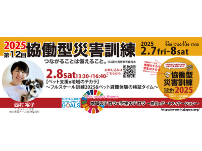 【2/8土】13:30/16:40~【ペット支援x地域のチカラ】~フルスケール訓練2025&ペット避難体験の検証タイム~(第12回協働型災害訓練)では、一般社団法人ひとtoペット/動物支援ナース 西村裕子代表(動物看護師)らによる、同行避難や避難所飼育などのペット防災、そして人も動物も命を守る行動をとるために必要なことについて、ワークショップを通して学び、その行動検証を行います。