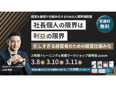 株式会社オレコン(本社:東京都港区、代表取締役:山本琢磨)は2025年3月8日-11日開催:人事評価制度構築のための”経営仕組み化”2時間トレーニングの申し込み受付を開始しました。