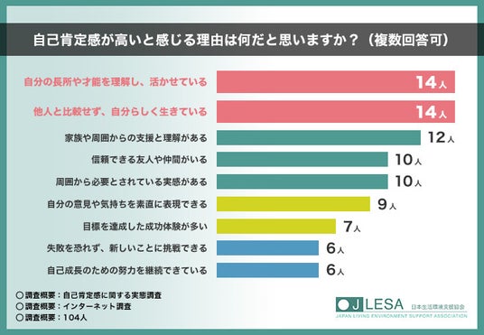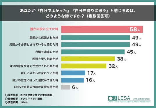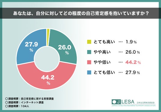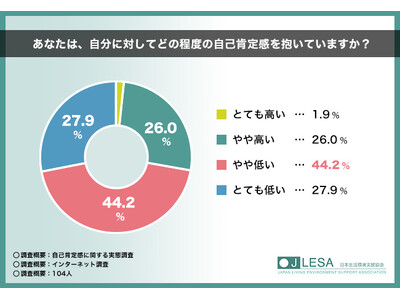 日本生活環境支援協会(本社所在地:東京都港区)は、全国20~60代の男女104名を対象に「自己肯定感」に関する調査を実施しました。