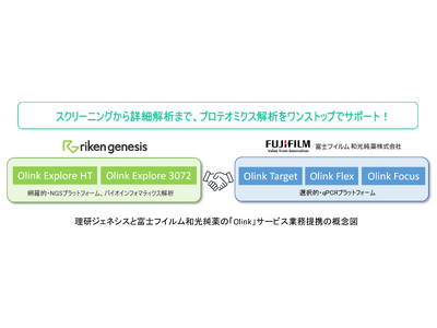 今回の業務提携により、理研ジェネシスが提供するOlink Explore HT、Olink Explore 3072、およびOlinkデータを使用したバイオインフォマティクス解析と、富士フイルム和光純薬が提供するOlink Target、Olink Flex、Olink Focusをワンストップに提供することが可能になります。