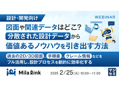 本セミナーでは、ミラリンクが提供する設計AIエージェント『タグっと』を活用し、過去の図面情報と関連資料を一元管理することで設計プロセスを劇的に効率化する方法を、具体的な活用例と共に詳しく解説します。