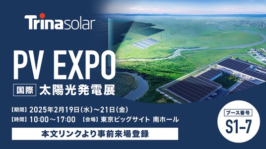 太陽光エネルギー分野におけるイノベーションで世界をリードするトリナ・ソーラーTrina Solar Co., Ltd.(SH:688599)(以下「トリナ・ソーラー」または「同社」)は、2025年2月19日(水)から21日(金)まで東京ビッグサイトで開催されるPV EXPO 2025に出展します。