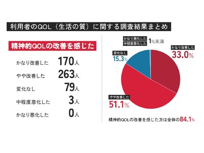 QOL改善:精神的QOL(生活の質)の改善を感じた方は全体の84.1%