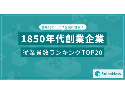 「誰もが活躍できる仕組みをつくる。」をミッションに掲げ、セールスチームの武器となるデータベース「SalesNow」を展開する株式会社SalesNow(本社:東京都渋谷区、代表取締役:村岡功規、以下「SalesNow」)は、国内550万社の企業情報を完全網羅した日本最大級のデータベース「SalesNow DB」より、1850~1859年に設立された企業のうち、2024年12月時点で従業員数が多い企業ランキングTOP20を発表いたしました。