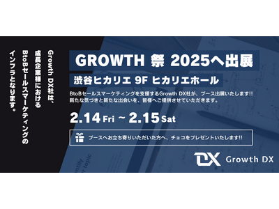 BtoBセールスマーケティングを支援する、株式会社Growth DX(本社:東京都千代田区、代表:筒井 瑛輝)は、この度2025年2月14日(金)と15日(土)の2日間、渋谷ヒカリエ ヒカリエホールで開催される株式会社YOUTRUST主催のカンファレンスイベント「GROWTH 祭 TOKYO 2025(以下、「本イベント」)」にシルバースポンサーとして出展します。