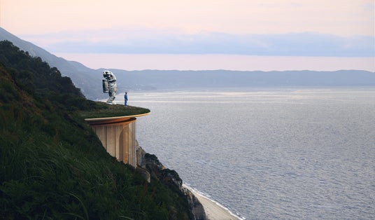 NIGO(R)氏がアートディレクションを手がけるNOT A HOTEL TOKYO「THE NIGO HOUSE」は、東京湾を望む断崖に誕生します。羽田空港から約45分、東京駅から車で約1時間の距離に位置し、周囲の自然と一体化するような設計が施されています。屋上にはKAWSの彫刻「SPACE」が設置され、建築とアートが融合した空間を創り出します。