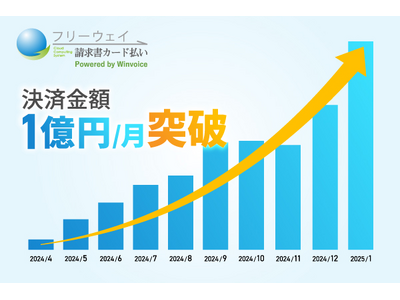 株式会社フリーウェイジャパン(本社:東京都中央区、代表取締役:井上達也、以下フリーウェイジャパン)は、同社が展開するBtoB決済サービス「フリーウェイ請求書カード払い」が、月間カード決済金額1億円を突破したことをお知らせします。