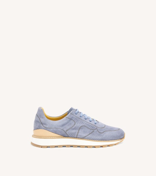 Moena Laser-Cut Sneakerは、特別に選ばれた素材で作られた軽くて柔軟な構造と、人間工学に基づいたデザイン。足を包み込む柔らかく通気性のあるアッパーが特徴で、心地のいいフィット感を提供します。レーザーカット技術を採用した「ローズソーン」パターンは、横方向の「T」エンブレム内と上部プロファイルに沿ってトレースされています。これに加えて、つま先辺りと背面位置に複雑な「織り」のような生み出すスタンプ加工と、前面にマイクロパンチングパターンを採用しています。