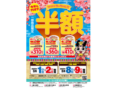 スガキコシステムズ株式会社(本社:愛知県名古屋市、代表取締役社長:菅木伸一)は、日頃よりご愛顧いただいている皆様へ感謝をお伝えすべく、スガキヤ、寿がきや店舗で「スーちゃん祭・寿祭2025」を開催いたします。