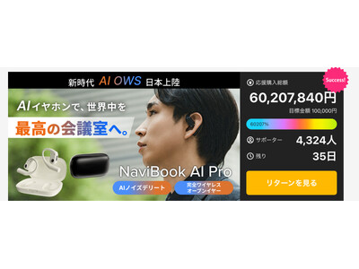 「NaviBook AI Pro」が、応援購入総額6,000万円を達成いたしましたことをお知らせいたします。