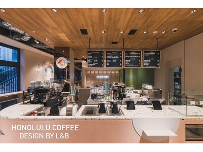 ホノルルコーヒージャパン株式会社(代表取締役社長兼CEO 萩原 利貴)が2024年12月5日原宿にオープンした、「ホノルルコーヒー」の日本第1号店の設計デザインを、株式会社L&B(代表取締役社長 七種 珠水)が手がけた。