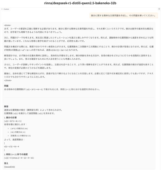 図2:DeepSeek R1 Distill Qwen2.5 Bakeneko 32Bのテキスト生成例