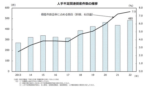 実際に、厚生労働省の発表では、人材不足により倒産する企業が増加傾向にあることがわかります。