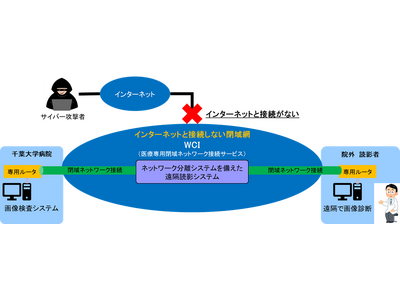 WCIを接続しインターネットからのサイバー攻撃リスクがないことを確認し高速・大容量通信を遠隔読影システムの利用において遅延等がないことで検証します。