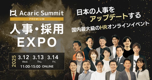 大学院生を中心とする高度専門人材のキャリア支援を行う株式会社アカリク(本社:東京都渋谷区、代表取締役:山田 諒)は、国内最大級のHRオンラインイベント「Acaric Summit Premium 人事・採用EXPO -2025 -Spring」を2025年3月12日(水)・3月13日(木)・3月14日(金)に開催いたします。