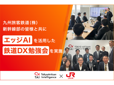 Tokyo Artisan Intelligence株式会社(本社:神奈川県横浜市、代表取締役:中原啓貴(CEO,CTO)、岡安一将(COO)、以下:TAI)は、九州旅客鉄道株式会社(本社:福岡県福岡市、代表取締役社長執行役員 古宮洋二、以下:JR九州)の 新幹線部の皆さまと共に、鉄道インフラのデジタルトランスフォーメーション(DX)をテーマにした勉強会を開催いたしました。本勉強会では、鉄道施設の保守におけるエッジAI技術の活用事例や、その将来性について意見交換が行われました。鉄道業界におけるDX推進に向けた第一歩となる貴重な機会となりました。
