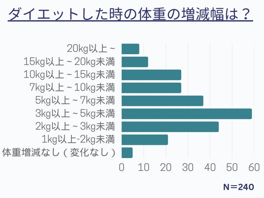 ダイエットをして、どれだけ体重が減ったことがあるのか?についても聞いてみました