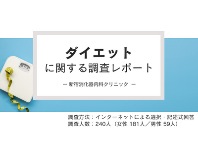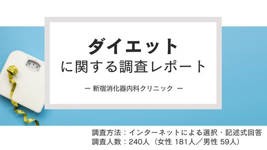 「新宿消化器内科クリニック」は、お客様に寄り添った丁寧な診療を心がけ、地域の医療を支えています。この度、男女240人を対象に「ダイエットに関するアンケート調査」を実施いたしました。
