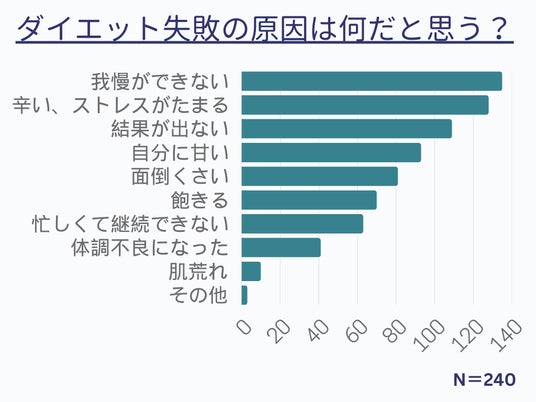 なぜダイエットが失敗するのか、原因は何だと思うかについて聞いてみました。