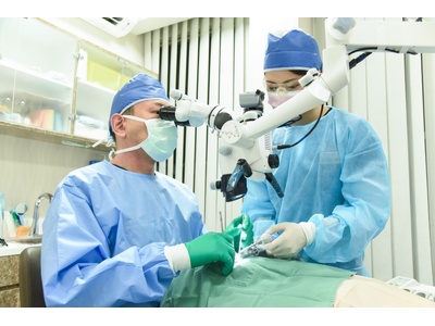 マイクロスコープによる精密根管治療の様子