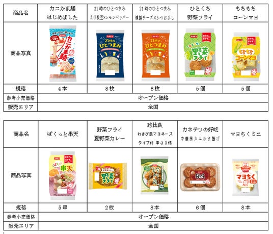 新商品には、カニかまを使用した涼しげな麺や、ロングセラー商品の姉妹品など、多彩なラインアップが揃いました。また、創業ほぼ100周年を記念して、社員が選んだ「もう一度食べたい商品」の中から2品が復刻版として登場。