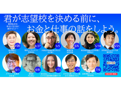そこで子どもが将来自分らしく輝ける進路を選べるよう、親子に本当に必要な知見、「自分で自分の人生をデザインする力」と「その技術」をお届けします。今回開催趣旨にご賛同いただいた各業界の第一線で活躍される講師をお招きし、親子のためのオンライン無料連続セミナーを実施します。