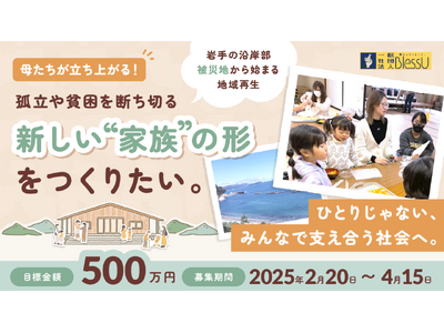 岩手県山田町でシングルマザーの課題解決を中心とした活動を行う一般社団法人BlessUが、多世代・多機能型の地域活性化拠点 「リタニティハウス」 の運営資金のクラウドファンディングを本日から開始します。