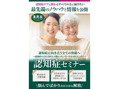 約30年に渡り介護事業で10,000人以上の認知症を有する方と関わってきた豊泉家グループが確立した"認知症ケア豊泉家メソッド"。ホームでの実際のエピソードも交えながら、認知症ケアに関わる全ての皆様が「少しでも穏やかな気持ちでケアに向き合えるように」という想いで、豊泉家独自のノウハウをお伝えするためにセミナーを開催し、延べ800名近くの皆様にご参加いただきました。