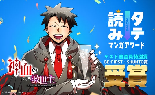漫画IPパブリッシャーの株式会社ナンバーナイン(本社:東京都品川区、代表取締役社長:小林 琢磨、以下ナンバーナイン)は、オリジナルwebtoon『神血の救世主~0.00000001%を引き当て最強へ~(以下『神血の救世主』)』が、2月20日に発表された「タテ読みマンガアワード2024」(コミックナタリー主催)において、ゲスト審査員特別賞(BE:FIRST・SHUNTO賞)を受賞したことをお知らせいたします。