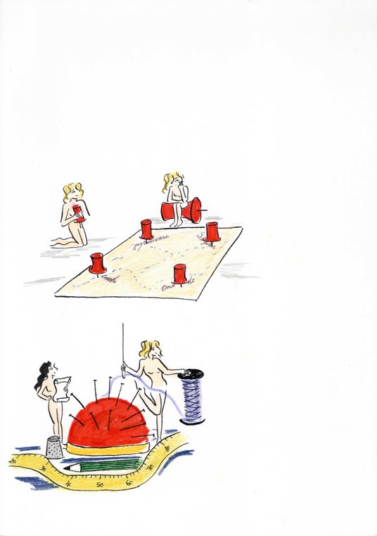 アイデアを話し合い練る様子 / 急いでサンプルを運ぶ様子