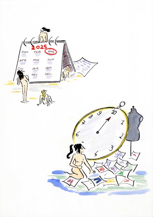 10周年にちなんで2014年のカレンダーが捲られ、2025年のカレンダーになる様子 / 1~10の数字で構成された時計の前でデザインを悩む様子