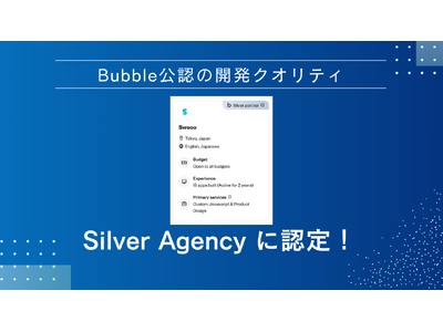 合同会社ゼロイチスタート(代表社員:諸藤哲耀)が運営するノーコード受託開発サービス「Swooo」は、ノーコード開発プラットフォームBubble公認の開発代理店「Silver Agency」に認定されました。