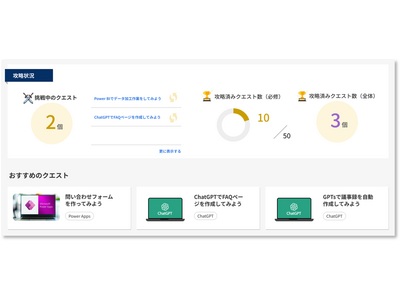 実践演習課題である「クエスト」には4つの特徴があり、攻略することで実践スキル強化の道のりを楽しみながら活用人材の育成が可能です。