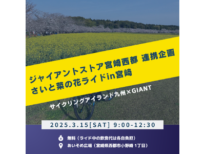 サイクリングアイランド九州実行委員会は、宮崎県西都市にオープンした「ジャイアントストア宮崎西都」と連携し、ファンミーティングおよびサイクリングイベントを開催いたします。