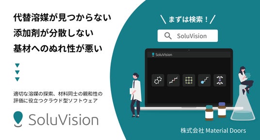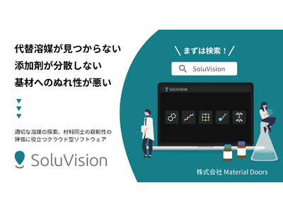 材料の親和性を可視化するクラウド型ソフトウェア「SoluVision」の開発・提供を行う株式会社Material Doorsは、この度「表面処理加工技術展2025」に出展することをお知らせいたします。