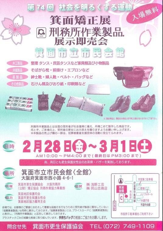 第74回社会を明るくする運動 箕面矯正展「刑務所作業製品展示即売会」を開催します。