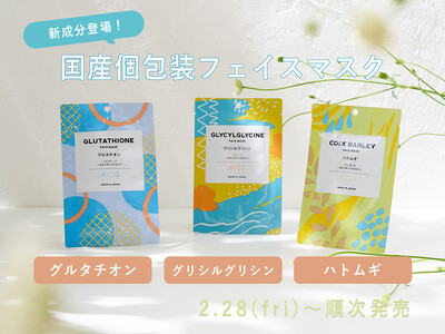 「高品質・高配合・適正価格」をモットーに化粧品の製造・販売を行う株式会社基礎化粧品研究所 KISOCAREの高濃度美容原液配合フェイスマスクに、新たに「ハトムギ」「グリシルグリシン」「グルタチオン」の新成分3種が仲間入りします。