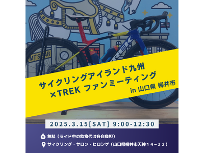 サイクリングアイランド九州実行委員会は、アメリカ発の自転車メーカーである 「TREK」とともに、山口県で特別なファンミーティングおよびサイクリングイベントを開催いたします。