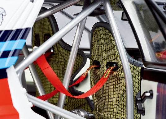 事故などの際にドライバーとナビゲーターを保護するロールバーをはじめ、アクセル、クラッチ、ブレーキペダルやバックミラーなどコクピット内部も忠実に立体化。